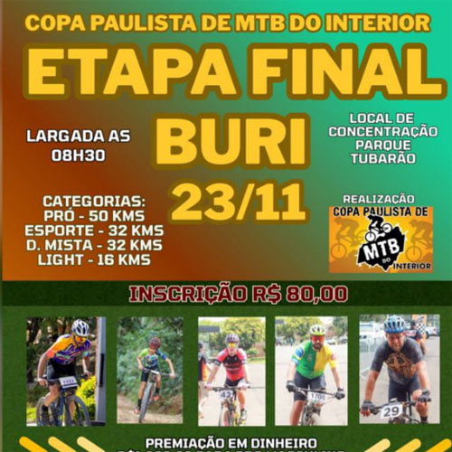 Sub 30 - até 29 anos; Andrey Bernardo da Silva dos Santos - Avulso - Itaí SP Frederico Fróes - IN Bikes - Buri SP João Vitor de Camargo - Epidemia Team AMCI - Itapetininga SP Leone Gouveia Antunes Carraro - Epidemia Team AMCI - Buri SP Lucas Vinicius Nascimento Moura - Igarapé New Holland / Itapeva Bike Team - Itapeva SP |
